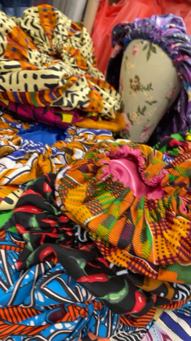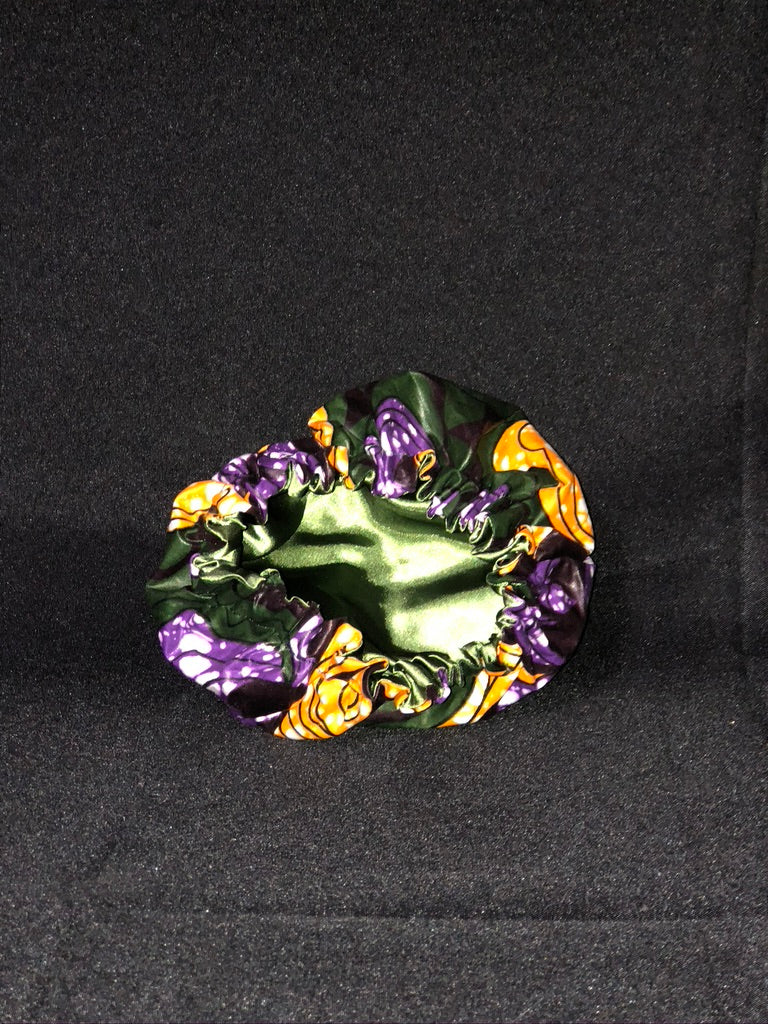 This stylish bonnet is crafted from vibrant African printed fabrics, offering a bold and colorful design. Lined with smooth satin, it helps protect your hair by reducing friction, preventing breakage, and maintaining moisture. The combination of striking patterns and the luxurious satin lining makes this bonnet both functional and fashionable.